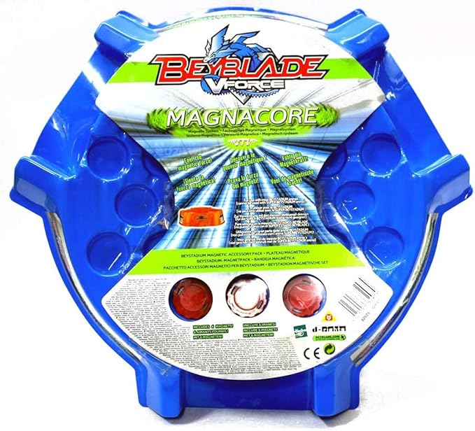 Beystadium Magnetpack "Magnacore" Lascia che le forze magnetiche agiscano sul tuo Magnacore Beyblade: collocato sotto l'arena del drago, la confezione magnetica Beystadium garantisce una buona porzione di azione. Le vostre competizioni diventano ancora più imprevedibili! I sei magneti possono essere posizionati a piacere sul supporto – una tensione varia garantita!