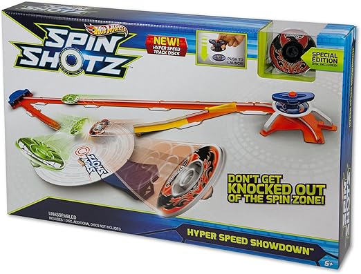 Le sfide più spettacolari possono essere ora testate grazie a questo set per i nuovi dischi rotanti Spinshotz: basterà avviare i dischi rotanti lungo la pista in modo che possano rimbalzare ed abbattere il bersaglio. Questo gioco permette di effettuare diverse acrobazie con i dischi, sfrecciare lungo la pista mettendo fuori combattimento gli avversari. I bambini possono competere con i loro amici per cercare di arrivare all'area "centrifuga".