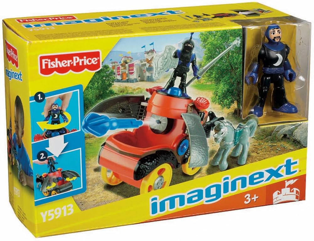 Con la Carrozza Imaginext raggiungere le mura del Castello è un’avventura emozionante: la carrozza è dotata di un punto di attivazione che, se fatto ruotare, la trasformerà in assetto di difesa. Inclusi un personaggio Imaginext dotato di elmo e di lancia ed un cavallo.