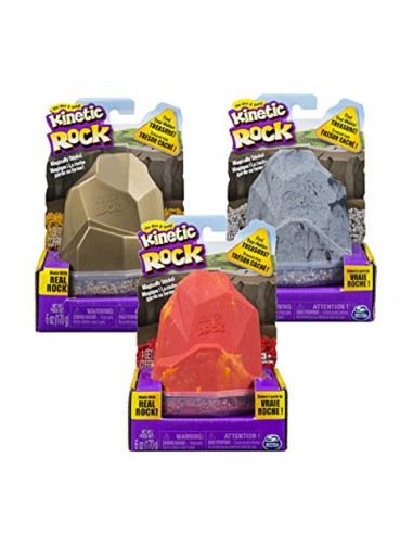 Vera roccia modellabile che non secca e non sporca Confezione apri e chiudi a forma di roccia con all'interno 170 g di Kinetic Rock Assortito in 3 colori: Rosso lava, Oro, Grigio "il prezzo si intende per singola roccia"