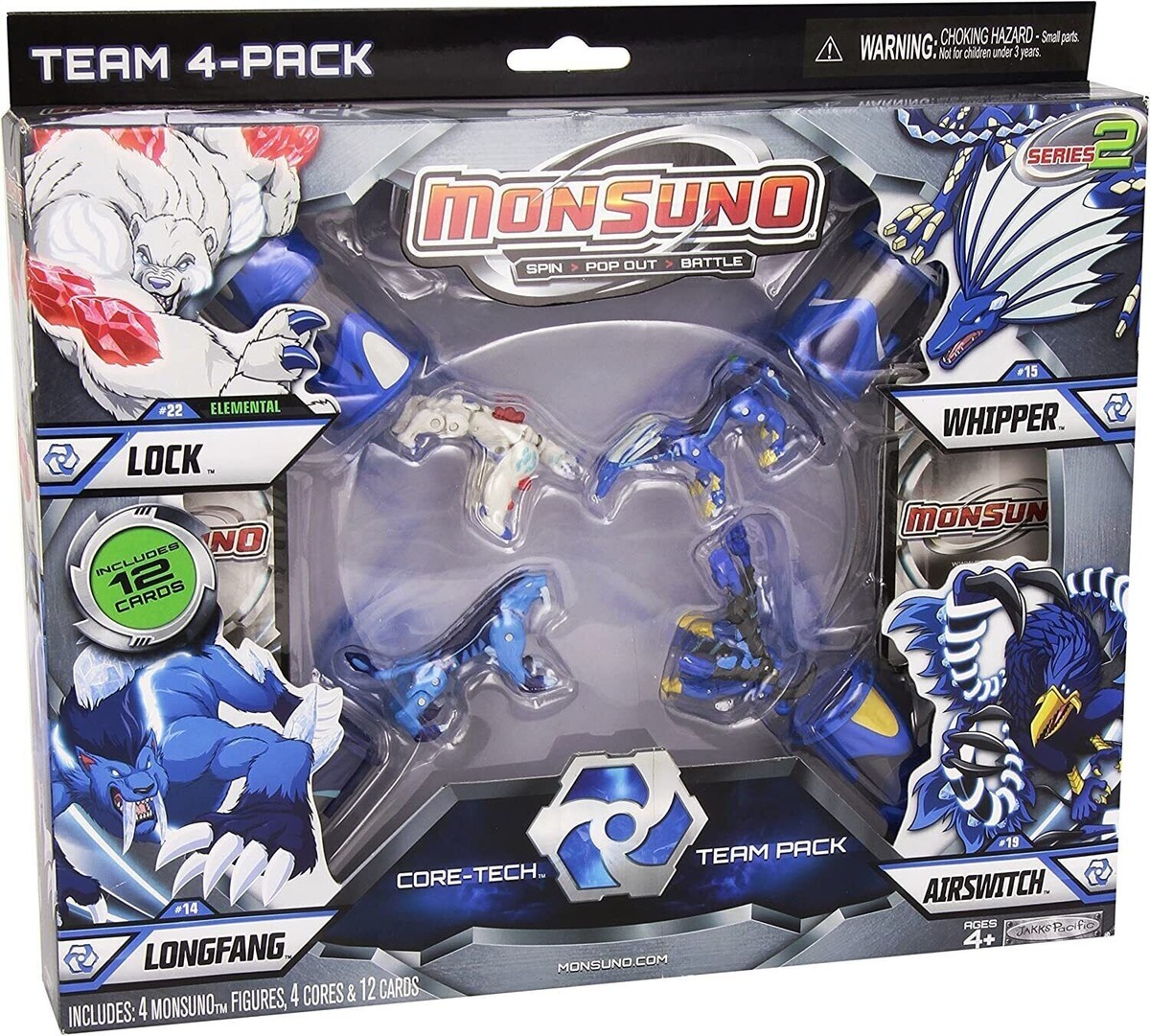 Tutta la potenza Monsuno nelle tue mani! Entra nella battaglia! Pack con 4 personaggi trasformabili con funzione pop-up.
